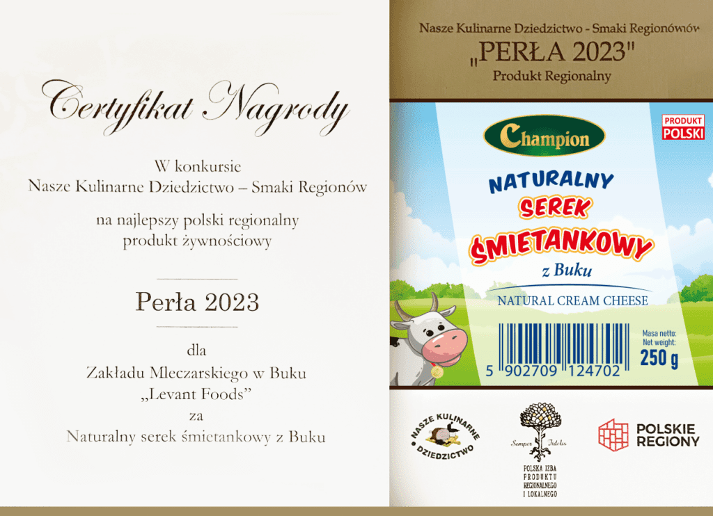 Tym razem Perła 2023 Produkt Regionalny – nagroda dla Naturalnego serka śmietankowego marki Champion z Zakładu Mleczarskiego w Buku. Wyjątkowy smak dający rozkosz podniebienia!