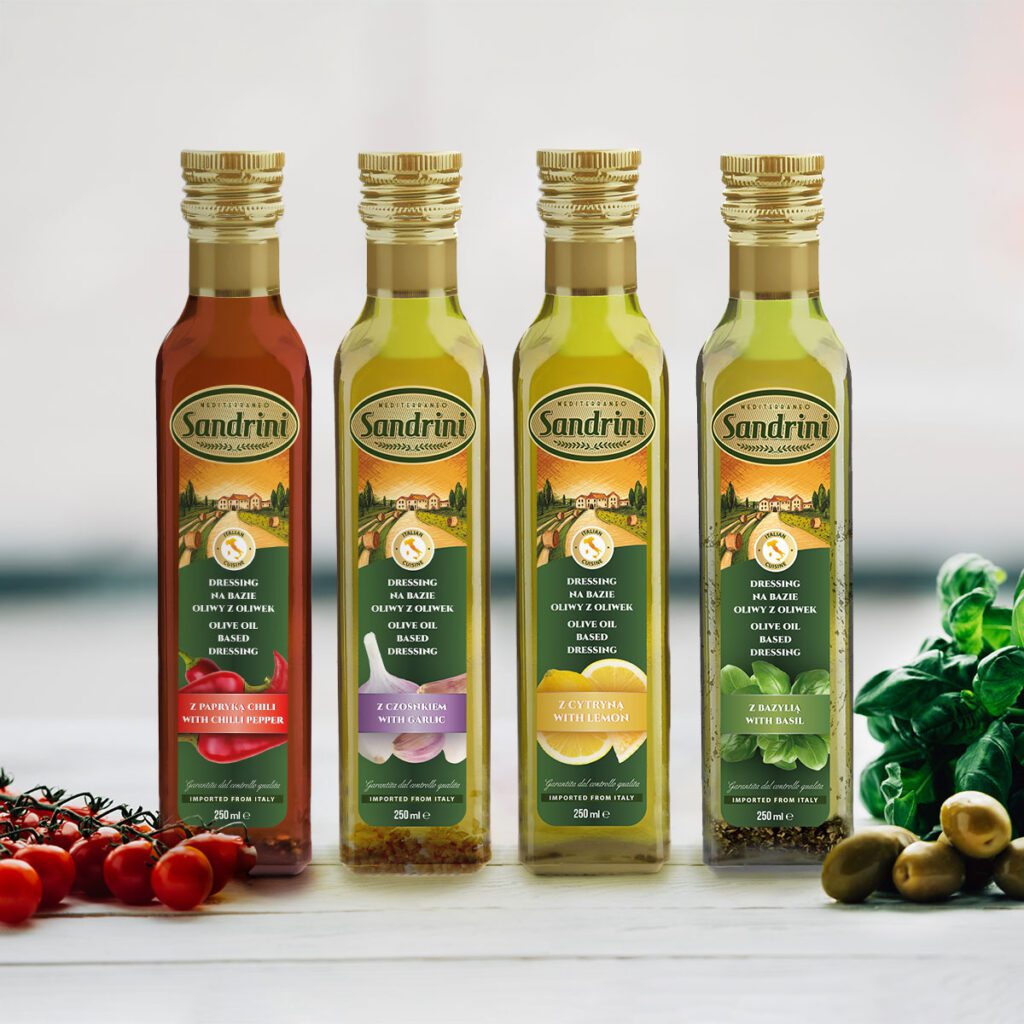 Oferta marki bazuje na takich produktach, jak oliwa z oliwek, olej z pestek winogron czy klasyczne oliwki. Wszystkie wyroby Sandrini pochodzą z najlepszych upraw skąpanych w słońcu i dojrzewających w śródziemnomorskim klimacie.